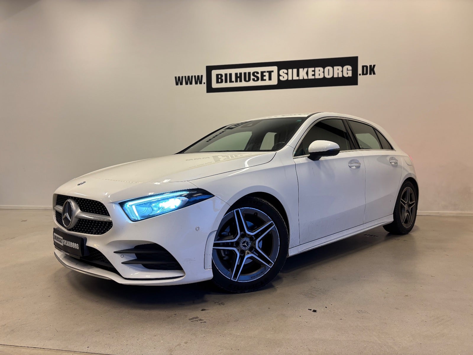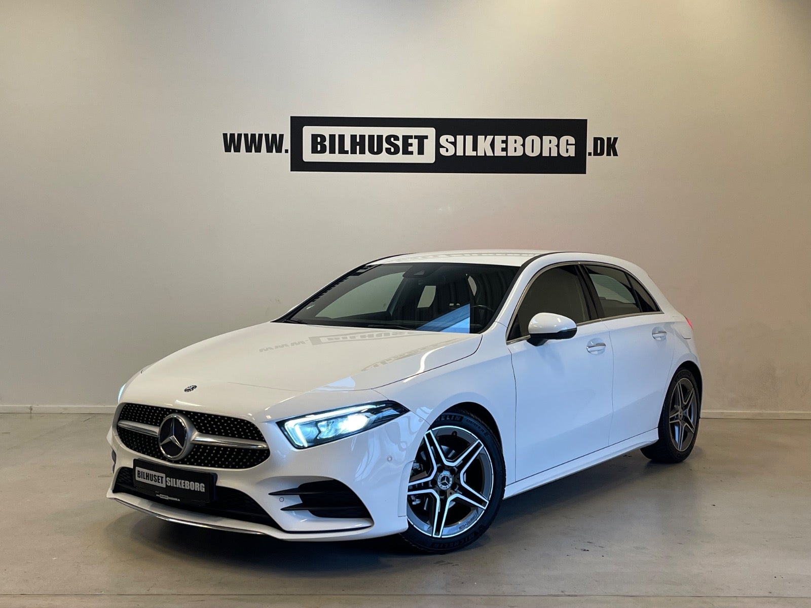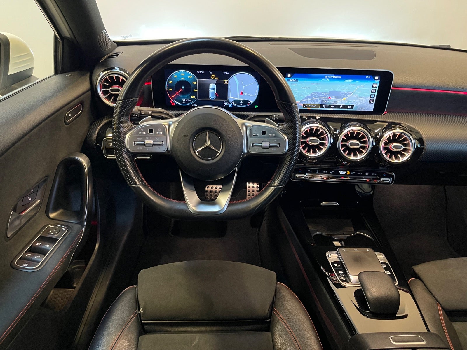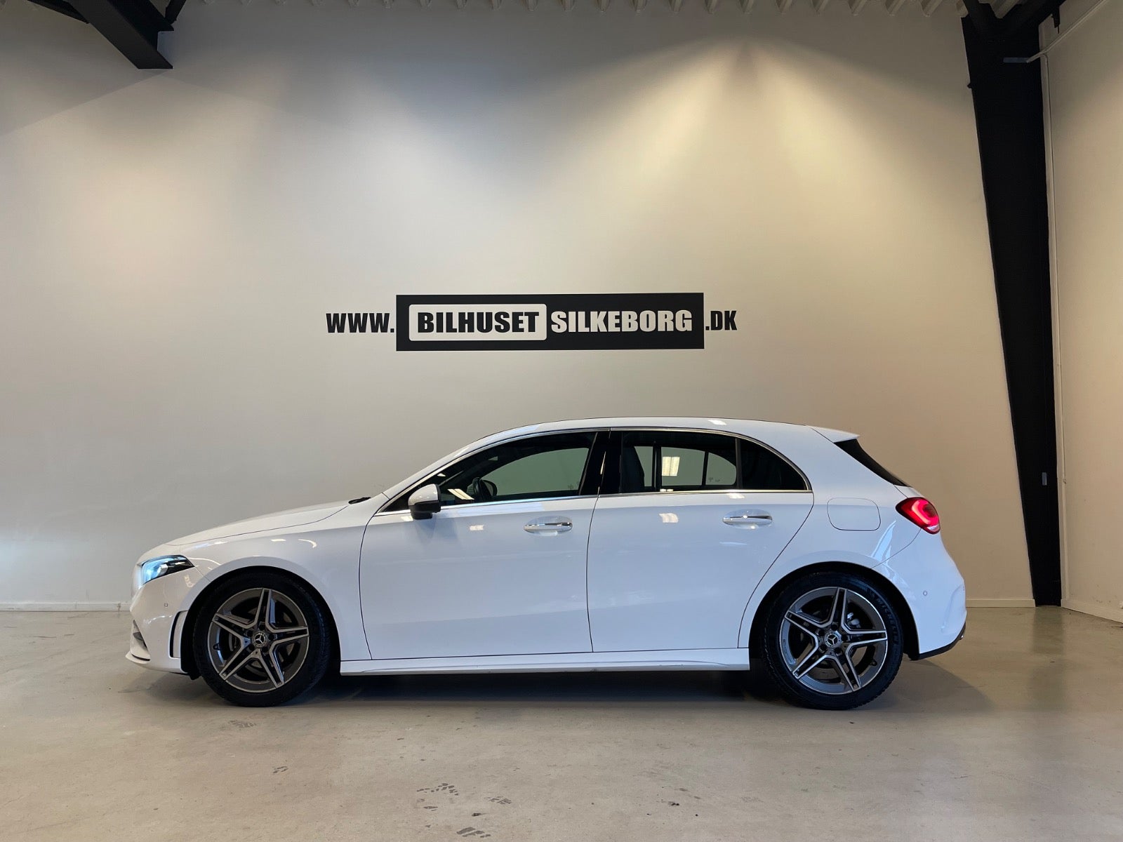 Læder/alcantara kabine m. røde kontrastsyninger, sort lofthimmel, 18" AMG alufælge, fladbundet sportslæderrat m. multifunktion, navigation m. touchscreen, AMG oplyst alu indstigningslister, Premiumpakke, bluetooth telefon & musik streaming, ambiente bleysning m. farvevalg, parkeringssensor for/bag m. optisk visning, aut.gear/tiptronic m. paddleshift, 2 zone klima, regnsensor, touchpad, sædevarme, alcantarabeklædte dørsider, el-klapbare sidespejle m. varme, dæktryksmåler, elektrisk parkeringsbremse m. autohold, træthedsregistrering, AMG måttesæt, isofix, Polarhvid.