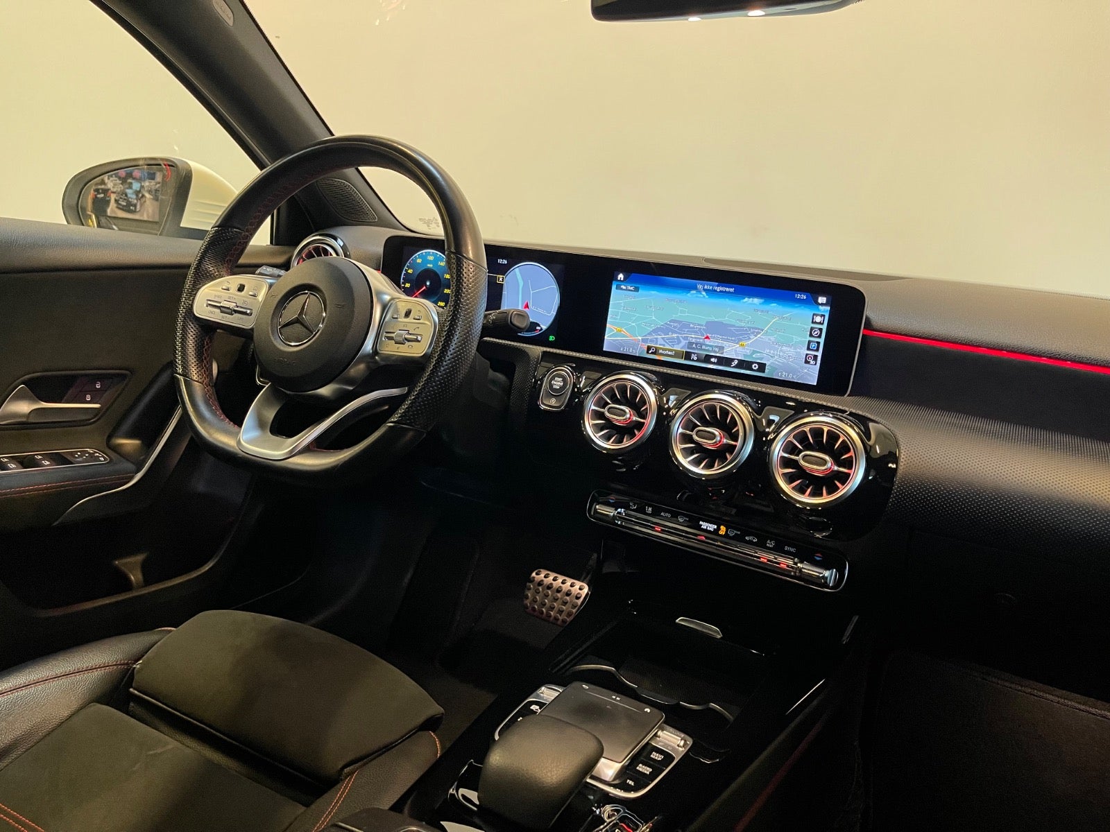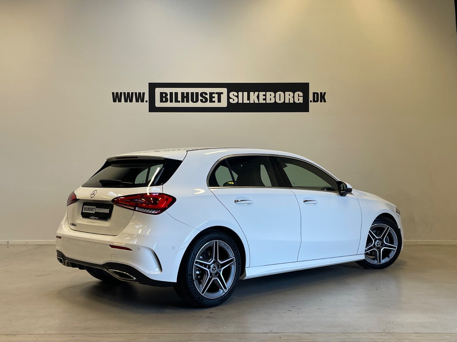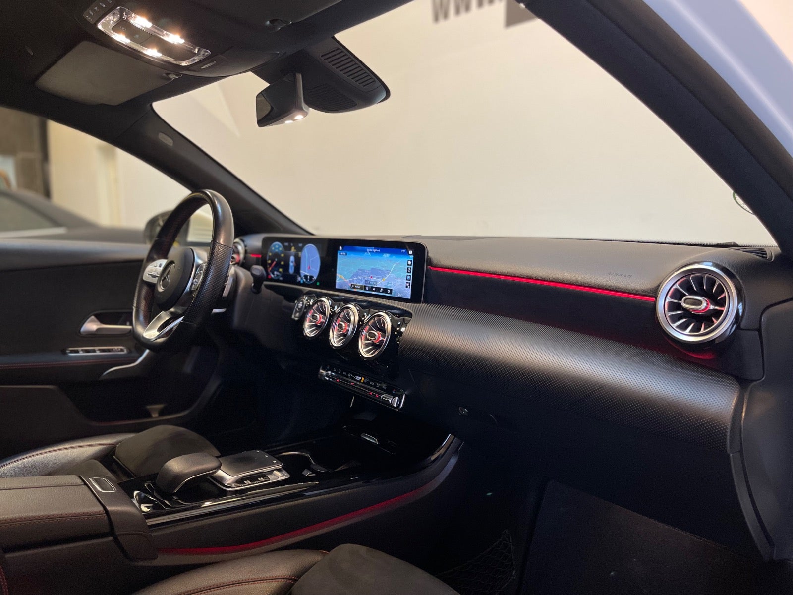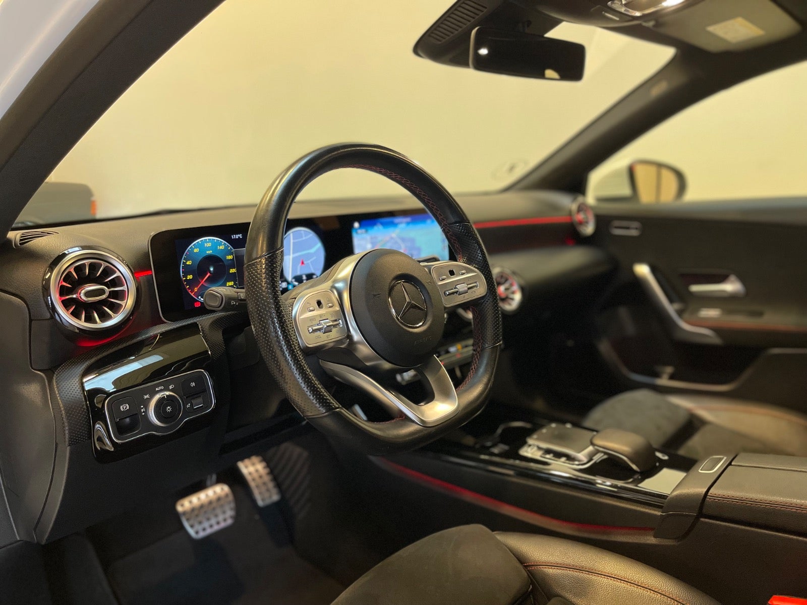 Læder/alcantara kabine m. røde kontrastsyninger, sort lofthimmel, 18" AMG alufælge, fladbundet sportslæderrat m. multifunktion, navigation m. touchscreen, AMG oplyst alu indstigningslister, Premiumpakke, bluetooth telefon & musik streaming, ambiente bleysning m. farvevalg, parkeringssensor for/bag m. optisk visning, aut.gear/tiptronic m. paddleshift, 2 zone klima, regnsensor, touchpad, sædevarme, alcantarabeklædte dørsider, el-klapbare sidespejle m. varme, dæktryksmåler, elektrisk parkeringsbremse m. autohold, træthedsregistrering, AMG måttesæt, isofix, Polarhvid.