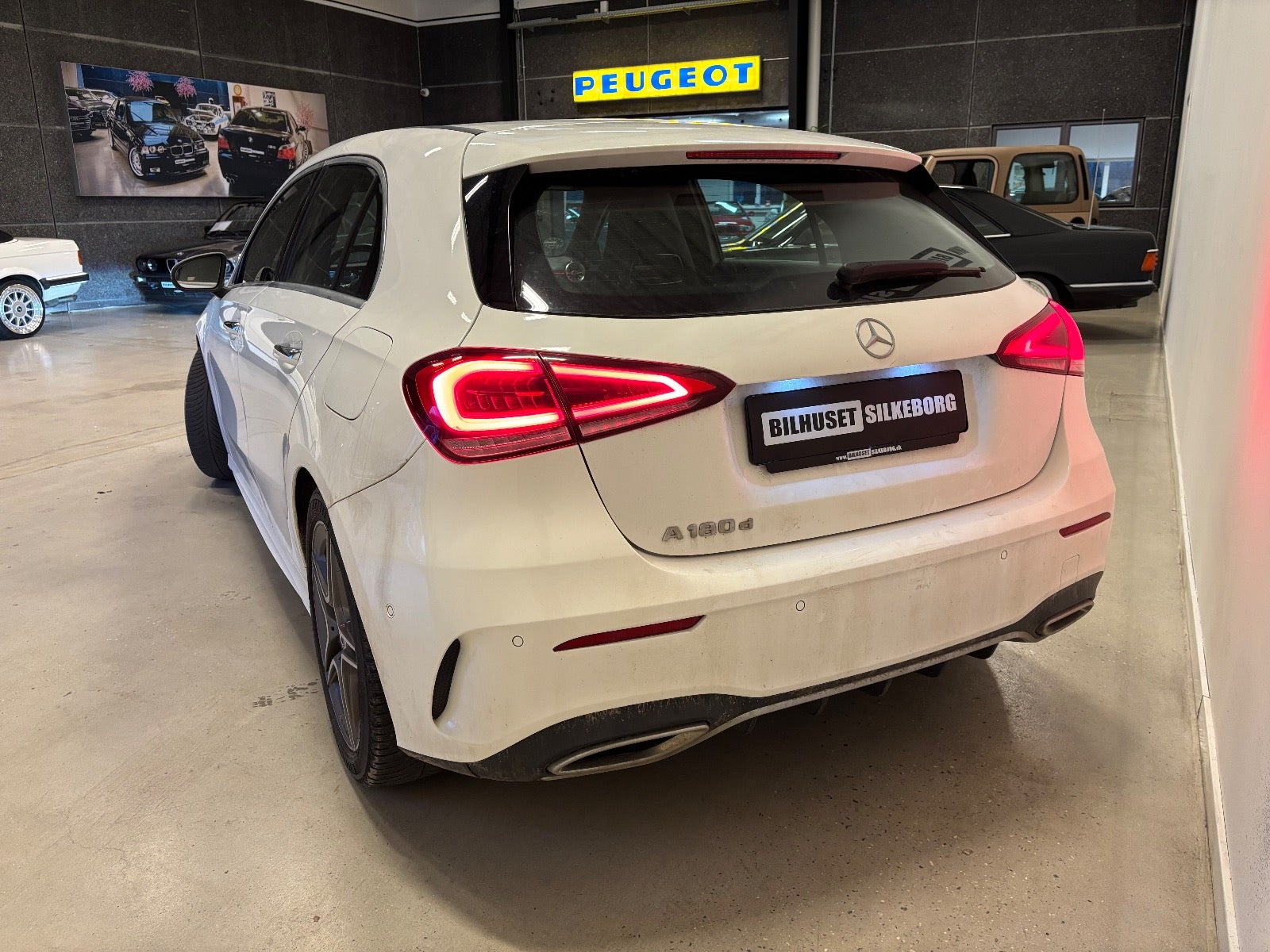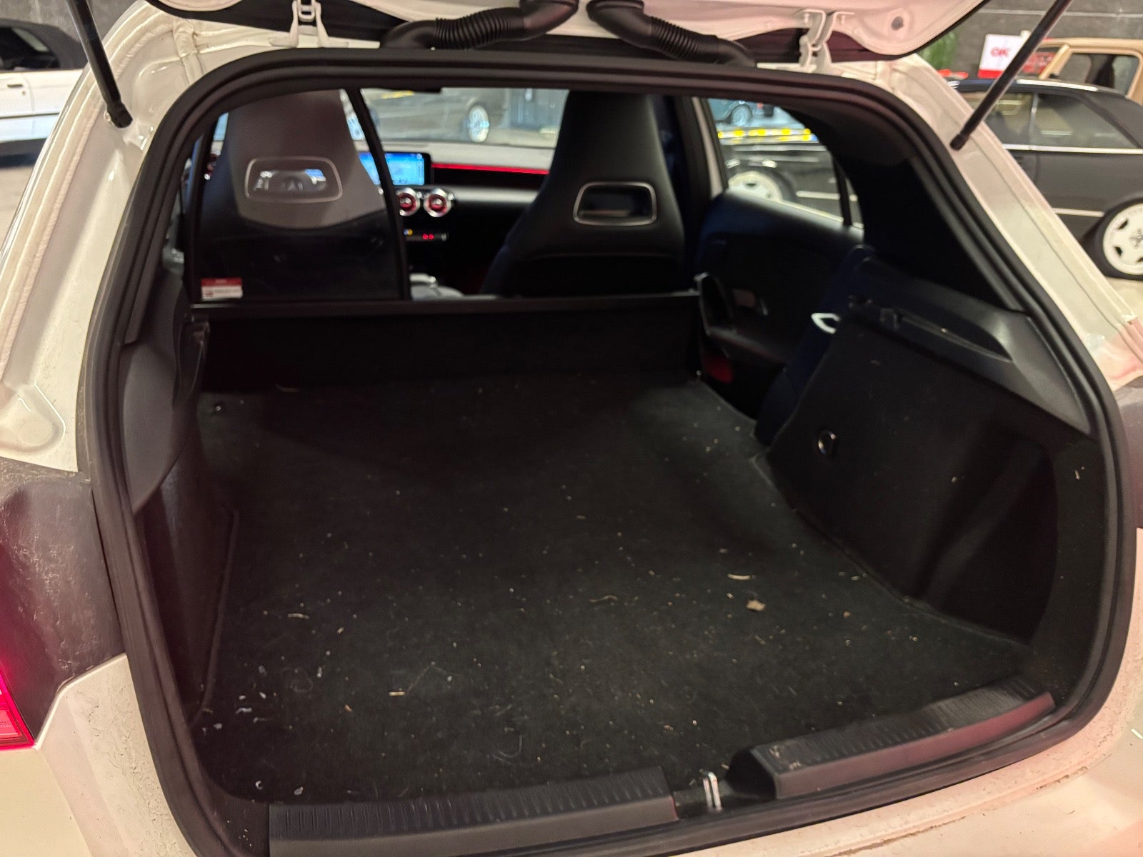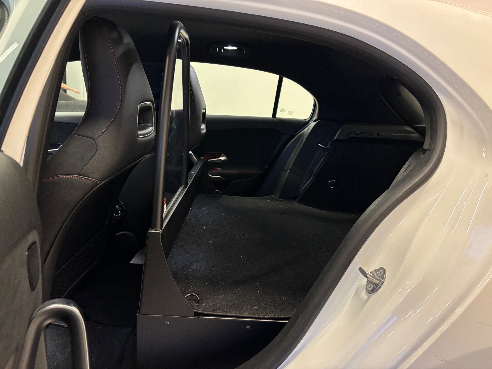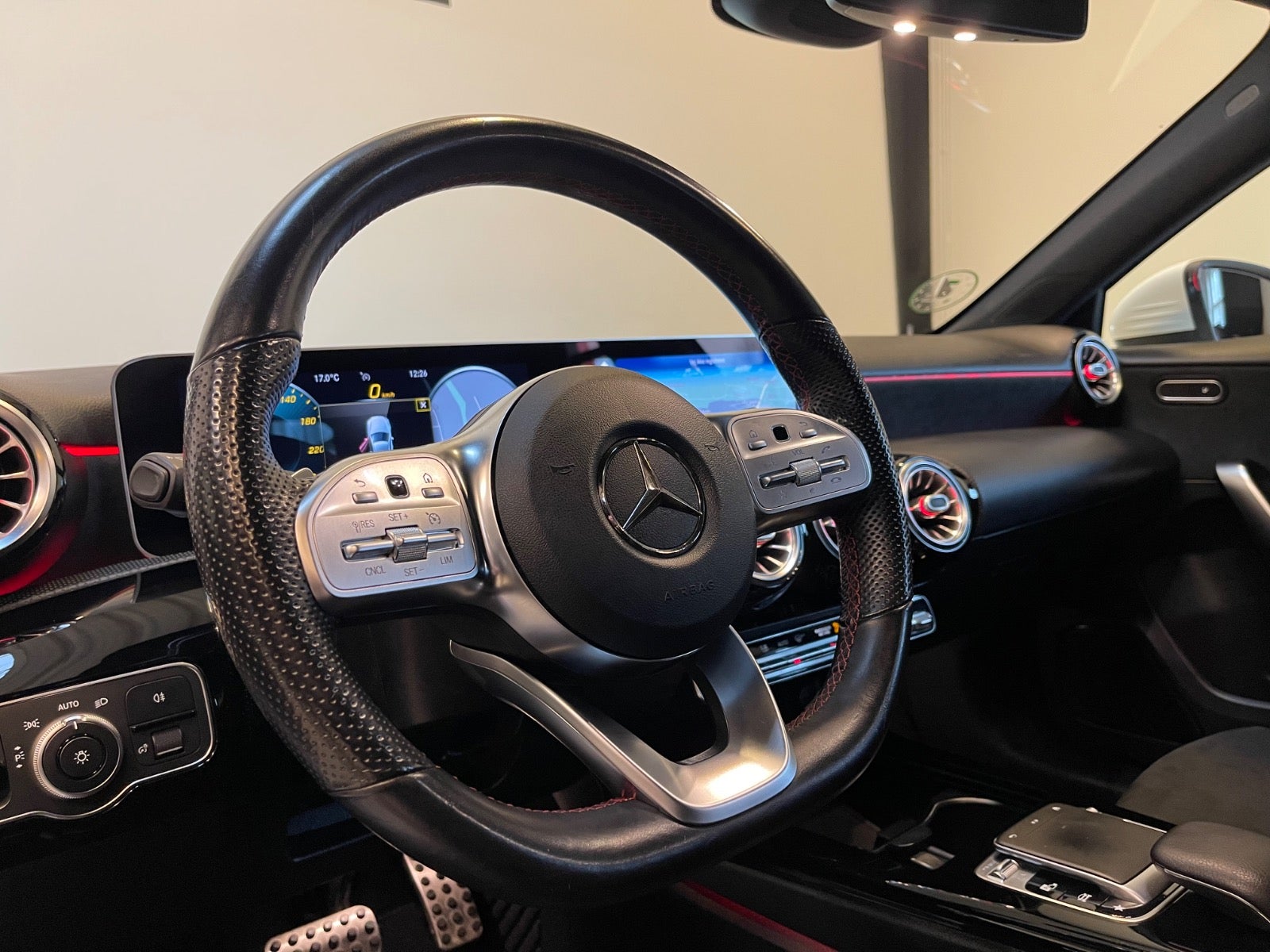 Læder/alcantara kabine m. røde kontrastsyninger, sort lofthimmel, 18" AMG alufælge, fladbundet sportslæderrat m. multifunktion, navigation m. touchscreen, AMG oplyst alu indstigningslister, Premiumpakke, bluetooth telefon & musik streaming, ambiente bleysning m. farvevalg, parkeringssensor for/bag m. optisk visning, aut.gear/tiptronic m. paddleshift, 2 zone klima, regnsensor, touchpad, sædevarme, alcantarabeklædte dørsider, el-klapbare sidespejle m. varme, dæktryksmåler, elektrisk parkeringsbremse m. autohold, træthedsregistrering, AMG måttesæt, isofix, Polarhvid.