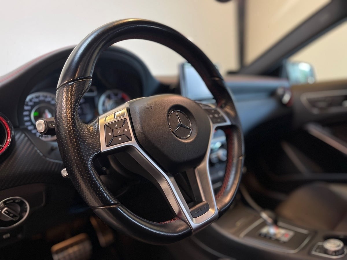 AMG fladbundet læder sportsrat, carbon spejle, 7g DTC Speedshift, oplyst AMG alu indstigningslister, brandslukker under førersæde, blindspot assist, navigationssystem, aut.gear m. paddleshift, HiFi lydpakke, LED kørelys m. kurvelys, vognbaneskift-alarm, regnsensor, lane assist, musikstreaming via bluetooth, håndfrit til mobil, el-justerbar lændestøtte, mørk loftbeklædning, skiltegenkendelse, automatisk lys, elektrisk parkeringsbremse, el-klapbare sidespejle, bi-xenon, mørktonede ruder i bag, 2 zone klima, sædevarme, automatisk start/stop, dæktryksmåler, isofix, lygtevasker, lavpristilbud.