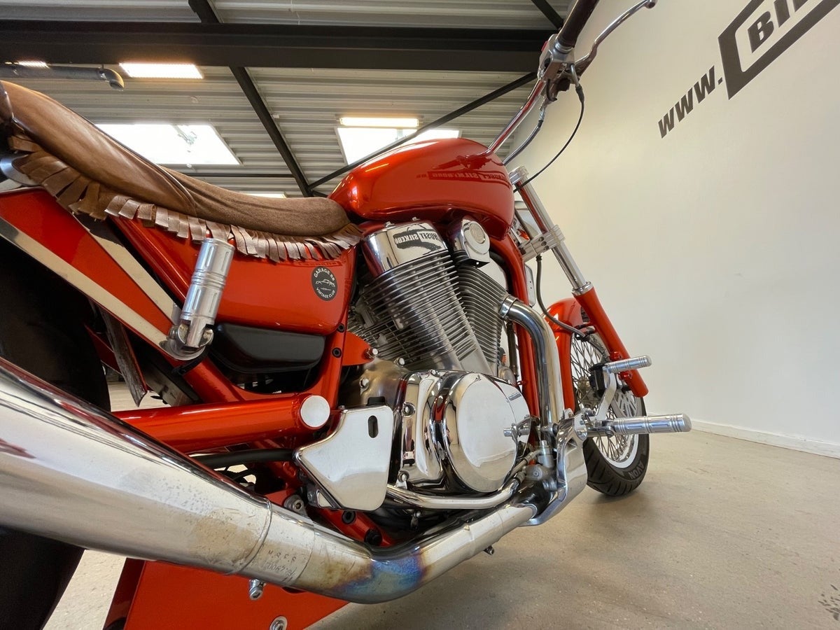 ⭐ Klassisk cruiser i den flotte candy orange metallic med masser af charme. 1360 cc V-twin med god bundtræk og den brølende lyd fra twin sportudstødning. Perfekt til dig, der vil have ægte cruiser-stemning og oldschool charme! ⭐