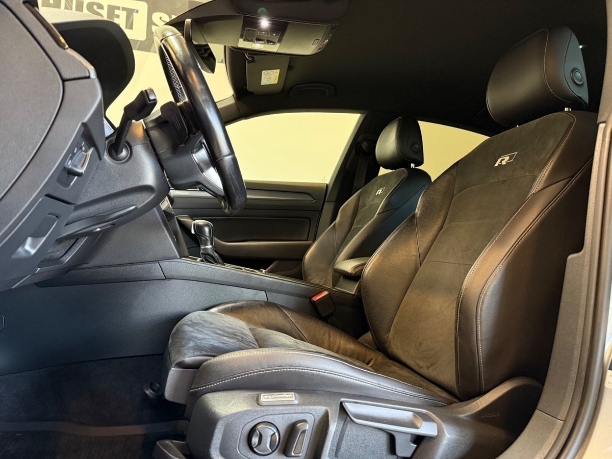 19" Alufælge m. helårsdæk, chrome lister/optik, læbespoiler på bagklap, r-line indstigningslister, læder/alcantara sportssæder, justerbar lændestøtte, splitbagsæde, mørk loftbeklædning, el-klapbare sidespejle m/varme, mørktonede ruder i bag, områdebelysning, 3 zone klima, automatisk start/stop, elektrisk parkeringsbremse m. auto hold, dab radio, navigation, håndfrit til mobil, musikstreaming via bluetooth, usb-a & aux tilslutning, dæktryksmåler, træthedsregistrering, skiltegenkendelse, isofix, automatisk nødbremsesystem, front assist.