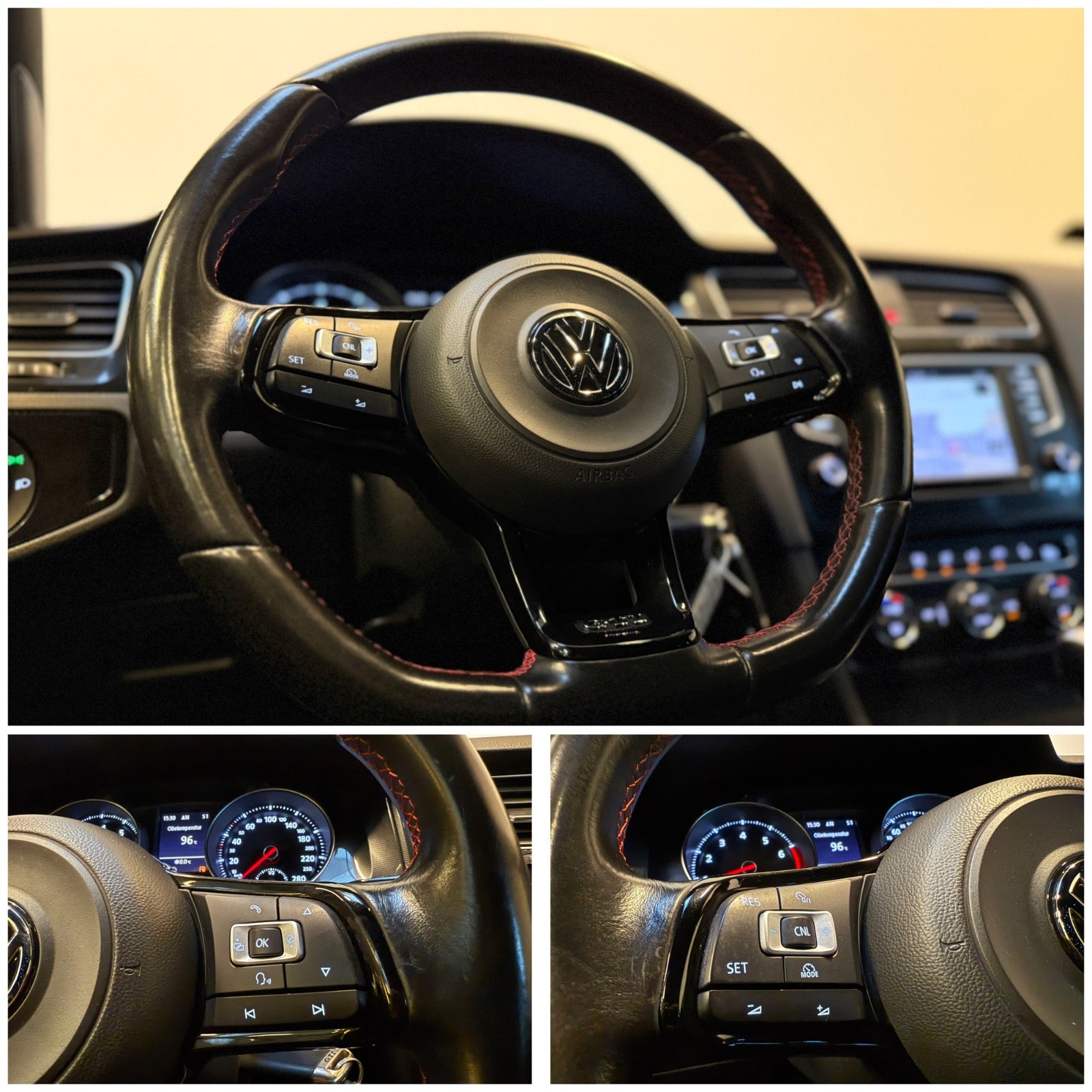 18'' Alufælge, røde bremsekalibre, ventileret bremseskiver, ebc green stuff bremseklodser, sorte VW logoer, sort spoilerforlænger, oplyst indstigningslister, komfort lys i spejle, GTI dør belysning, sænket sportsundervogn, multifunktions læderrat m. paddleshift, GTI sportssæder, højdejust. forsæder, splitbagsæde, mørk loftbeklædning, ambiente belysning, el-klapbare sidespejle m/varme, led tågelygter, mørktonede ruder, 2 zone klima, 3 trins sædevarme i for, 4x el-ruder, automatisk start/stop, elektrisk parkeringsbremse m. auto hold, håndfrit til mobil, musikstreaming via bluetooth, parkeringssensor for/bag m. optisk visning, træthedsregistrering, isofix, automatisk lys, nysynet 02/2026, nyserviceret v. 158.000km inkl tændrør og DSG service, Carbon steel grå metallic.